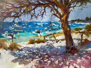 He paints from life on location, without the aid of photography, using his small studies as reference for larger studio works created in his home studio in Mandurah.